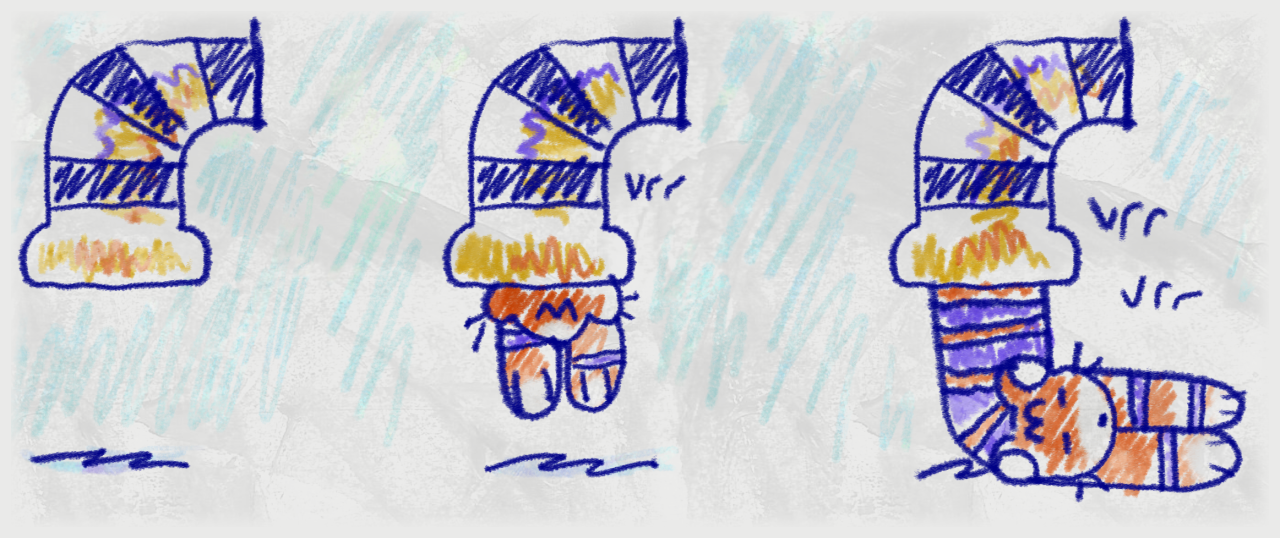 a three-panel drawing of a tiger being poured out of a pipe as though manufactured